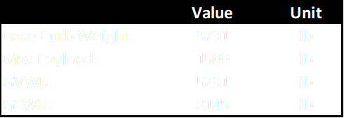 Payload Capacity Limit: The max payload capacity imposed by Ford. For the Maverick, this is nominally 1,500 lb. I say nominally because depending on the options selected in the build the payload capacity limit will likely be less. The actual number for a given vehicle will be on the door sticker, but I’m gonna use 1,500 lb for now.